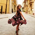 Women Floral Dress Print Flowy Sexy V-Neck Beach Boho Chic Maxi Dress Casual High Waisted Party Feminino Vestidos Dresses