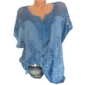 Limited Price 4XL Women's Lace Blouses Sexy V Neck Short Sleeve Embroidered Batwing Loose Shirt Summer White Tops with FREE Worldwide Shipping!