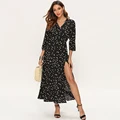 Discount Price Aachoae Women Polka Dot Long Dress Boho Sexy V Neck Split Maxi Party Dress Three Quarter Sleeve Cas with FREE Shipping Worldwide!