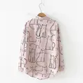 Best Offer Cute Cat Print Loose Casual Ladies Blosues Tops Women Turn Down Collar Long Sleeve Shirt Blouse Fem with FREE Worldwide Shipping!