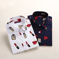 Dioufond White Navy Lips Print Women Blouses Long Sleeve Ladies Office Blouse Shirt Casual Button Down Blusa 2017 Spring