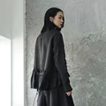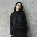 [EAM] Women Double Layers Hem Cotton Big Size Blouse New Stand CollarLong Sleeve Loose Fit Shirt Fashion Spring Autumn 2020 C006