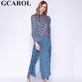 GCAROL 2020 Spring Women Geometric Floral Shirt Dress A-Line Asymmetric Streetwear Vintage Long Dress XS-L