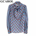 Best Price GCAROL New Women Geometric Floral Blouse Spring Fall Ladies Bowknot Shirt Asymmetric Vintage Street with FREE Worldwide Shipping!