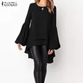 Cheap Price Lantern Sleeve Layered Shirts Women Asymmetrical Blouse 2020 ZANZEA Fashion Tops Female Casual Blus with FREE Worldwide Shipping!