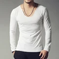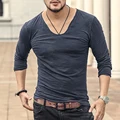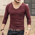 Men Autumn Wear V Collar Long Sleeve Casual Cotton Bottoming T-shirt Metrosexual Men Pure Color Slim European Style Top Tees