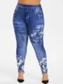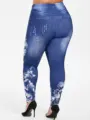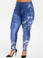 Discount Offer ROSEGAL Plus Size Blueberry Blue 3D Floral Jean Print Jeggings High Rise Tight Bottoms Elastic Wais with FREE Shipping Worldwide!