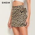 Discount Offer SHEIN Leopard Print Tie Side Wrap Satin Glamorous Skirt Women Bottoms 2019 Autumn High Waist Zipper with FREE Shipping Worldwide!