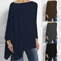Limited Price Womens Blouses Solid Color Autumn Long Sleeve Irregular Loose Ladies Tops Comfortable Girl Elegant with FREE Worldwide Shipping!