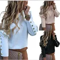 Discount Offer 2019 Work Wear Women Blouses Long Sleeve Back Metal Buttons Shirt Casual O Neck Printed Plus Size T with FREE Worldwide Shipping!