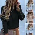 Winter Autumn Women's Blouse Sexy Casual Lace Bandage Top Long Sleeve Crew Neck Blouse Fashion Elegant Casual Loose Shirt Female