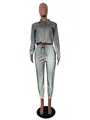 Limited Offer Adogirl Women Sexy Reflective Tracksuit Night Version Buttons Turn Down Collar Long Sleeve Crop Top with FREE Worldwide Shipping!