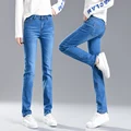 2019 Brand Elastic Skinny Pants Women High Waist Straight Jeans Female Washed soft Plus Size Office Lady Trousers Light Blue