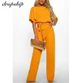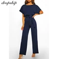 Dropship Jumpsuit Rompers Womens Jumpsuit Overalls WomenJumpsuits 2019 Streetwear Plus Size Romper Summer Lace-up Short Sleeve