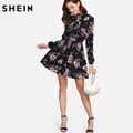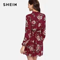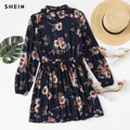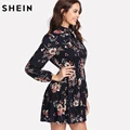 Special Price SHEIN Autumn Floral Women Dresses Multicolor Elegant Long Sleeve High Waist A Line Chic Dress Ladie with Free Worldwide Shipping!