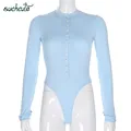 SUCHCUTE Knitting Body Overalls For Women Button Bodysuit 2019 Longslive Skinny Female Playsuit Macacao Feminino Jumpsuit Romper