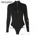 Waatfaak Turtleneck Long Sleeve Bodysuit Zipper Black Reflective Stripes Graphic Casual Elegant Women Body Sexy Bodies Ladies