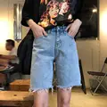 Summer Casual White Black Denim Shorts Women Knee Length High Waist Shorts Women Short Jeans Skinny Stretch Women Shorts C6133