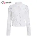Best Price Conmoto Fashion White Hollow out Sweaters Women 2019 Autumn Winter Casual Thin Short Knit Tops Fema with Free Shipping Worldwide!