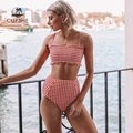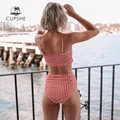 Limited Offer CUPSHE Sexy Red Gingham Smocked Bandeau Bikini Sets Women Cute High Waist Two Pieces Swimsuits 2020 with Free Shipping Worldwide!
