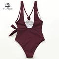 Limited Price CUPSHE Solid Low Back One-piece Swimsuit Women Burgundy Deep V neck Monokini 2020 Girl Beach Padded with Free Worldwide Shipping!