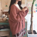 DICLOUD Solid V-Neck Knit Sweater Women Autumn Korean Long Sleeve Loose Sweater Cardigan Ladies Casual Warm College Winter Coat
