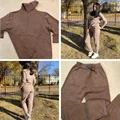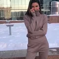 FORERUN 10 Colors Two Piece Set Women Knitted Suit Turtleneck Sweater and Long Pants Knit Suits Matching Sets Ensemble Femme