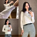 GCAROL 19 New Women 30 % Wool Sweater V Neck And O Neck Minimalist Knit Jumper OL Stretch Base OL Knitted Pullover 3XL