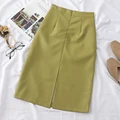Special Offer HELIAR PU Leather Solid Split Skirts Women High Waist Straight Midi Skirts Highstreet Skirts 2020 S with FREE Shipping Worldwide!