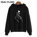 Oulylan Harajuku Women's Sweatshirt Ladies Hoody Pop Love Heart Finger Hood Casual Print refill Hoodies Girls