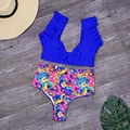 Women Floral Print Swimwear Sexy Solid Ruffle Bikinis Dot Bikini Set High Waist Swimsuit Bathing Suit Female Summer Beachwear