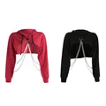 Cheap Offer SUCHCUTE Punk Hoodies Kpop Sweatshirts Women Gothic Summer 2019 Metal Chain Hip Hop Harajuku Hoodie with FREE Shipping Worldwide!