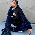 Weekeep Women Loose Streetwear Black Sweatshirt Knitted Hooded Shinning Print Hoodies Fashion Moletom Long Hoodie Women Tops