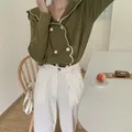 Limited Offer Women Autumn Winter Green Short Sweater Coat Retro Gentle Double Breasted Knitted Cardigan Coat Cas with FREE Worldwide Shipping!