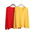 Cheap Offer Yellow V neck Knitted Pullover Women Spring Autumn Long Sleeve Casual Sweater Loose Solid Color Bas with Free Shipping Worldwide!